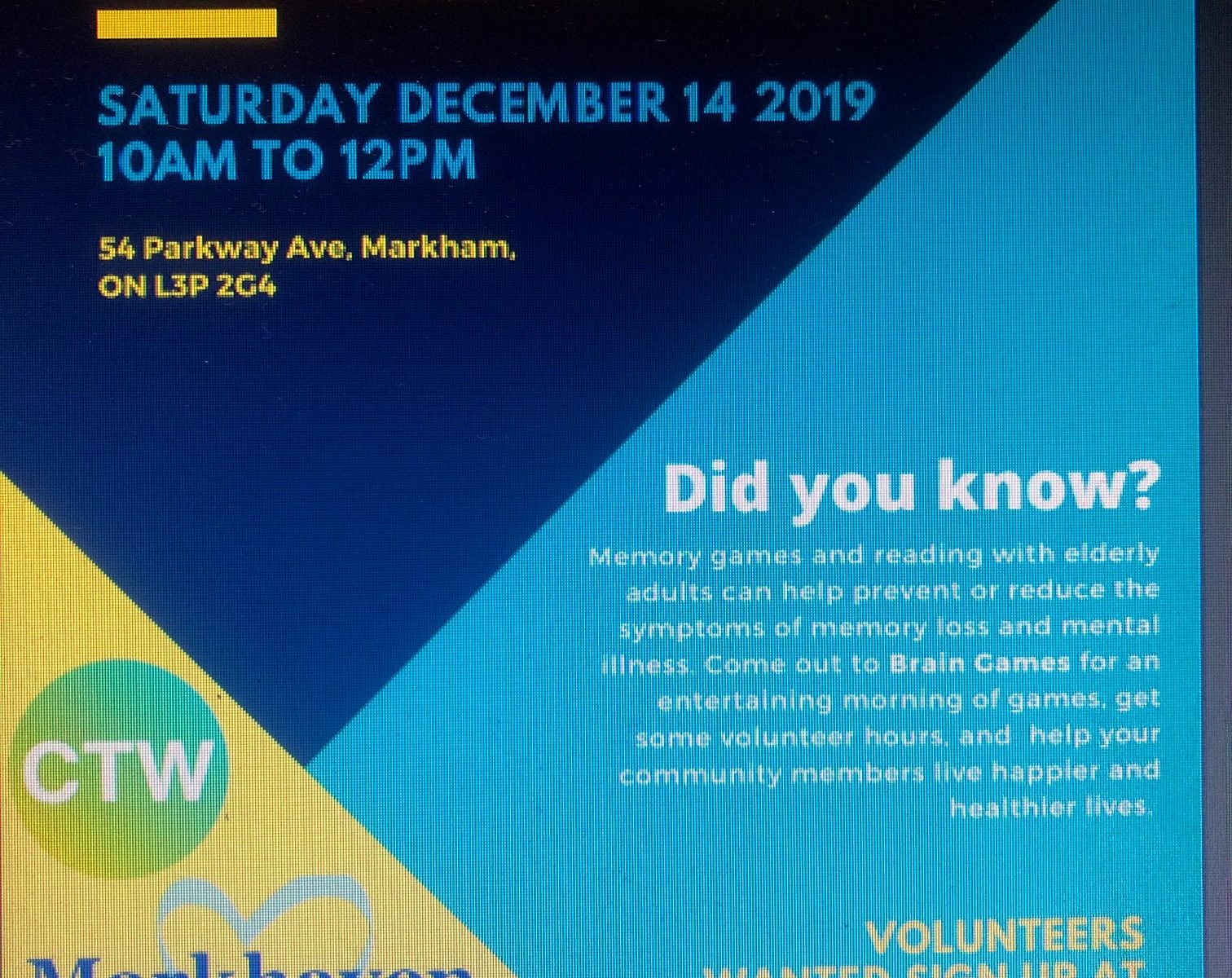 To kick off the season of giving, here at Volunteer Markham, our Youth Executive Team at Change the World Markham welcome other youth to volunteer with them at Markhaven Seniors Home for Brain Games! Sign up at: bit.ly/braingamesctw