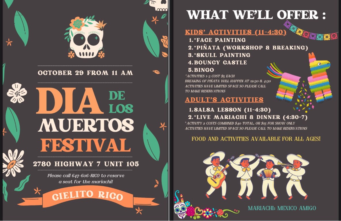 Come to celebrate DDLF (Day of the Dead a Mexican Holiday) with us with Mariachi, pan de Muerto, piñatas, face painting, bouncy castle, bingo and more! Certain activities and dinner are paid* Please see flyer for details.