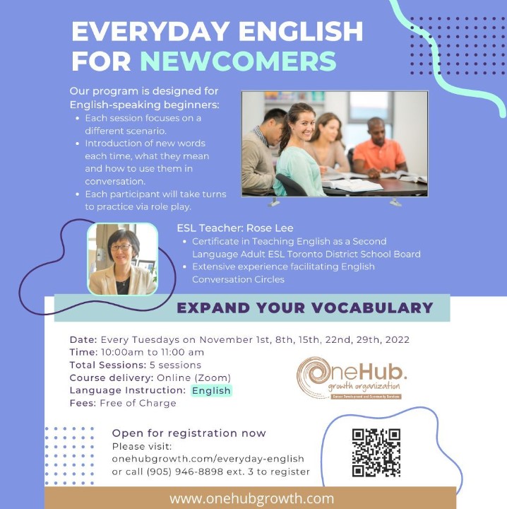 Please visit: onhubgrowth.com/everyday-english or call 905-946-8898 ext 3 to Register