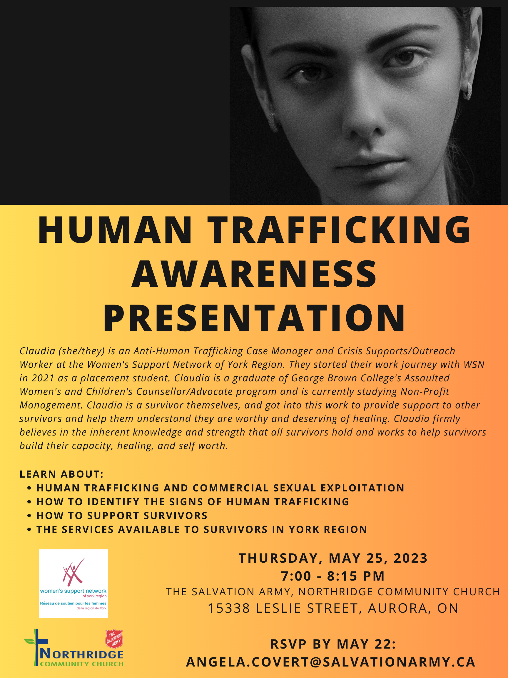 Presenter: Claudia Leyds, Anti-Human Trafficking Case Manager, Women’s Support Network of York Region