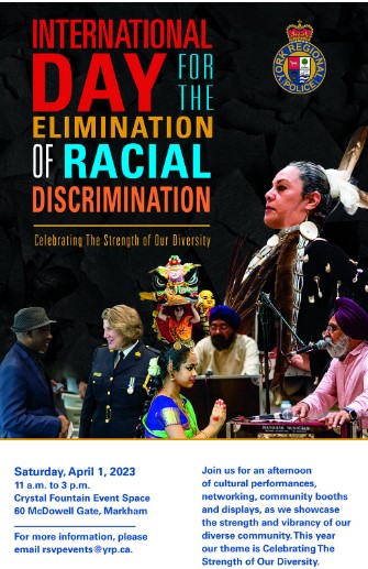 On April 1, 2023 join Volunteer Connect York Region, in partnership with York Regional Police for an afternoon of cultural performances, networking, community booths and displays as YRP showcases the strength and vibrancy of our diverse community. This year our theme is celebrating the Strength of our Diversity.