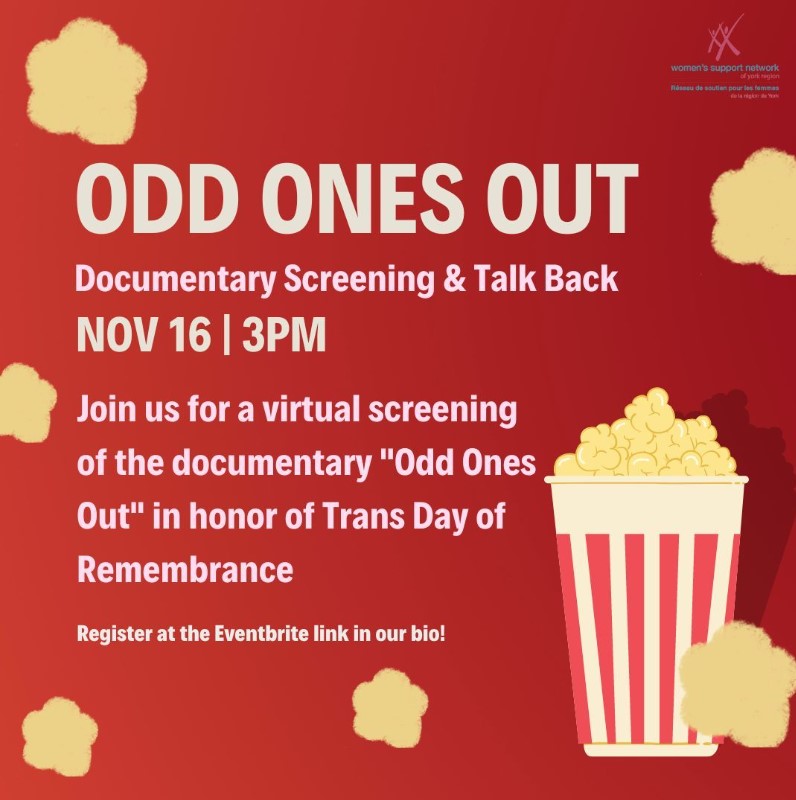 On November 16 at 3PM, Womens Support Network will be hosting a virtual screening of the documentary “Odd Ones Out” in honor of the Trans Day of Remembrance. Join us to view the documentary and gain new insight into lived experience and how we as community members can uplift and support the Trans community and individuals. Register at the Eventbrite link in our bio.
