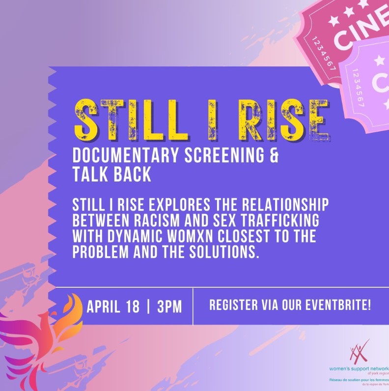Join WSN for a screening of the documentary Still I Rise on April 18 at 3PM! Still I Rise explores the relationship between racism and sex trafficking with dynamic womxn closest to the problem and the solutions. Register at the Eventbrite link: https://www.eventbrite.ca/e/still-i-rise-documentary-screening-talk-back-tickets-597750175867?aff=ebdsoporgprofile