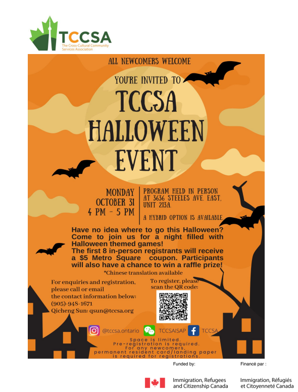 A Halloween Event for newcomer families filled with fun activities, treats, and raffle prizes! The first 8 newcomer registrants will receive a $5.00 Metro Square Coupon. More details available upon registration! We hope to see you for a spook-tastic time!