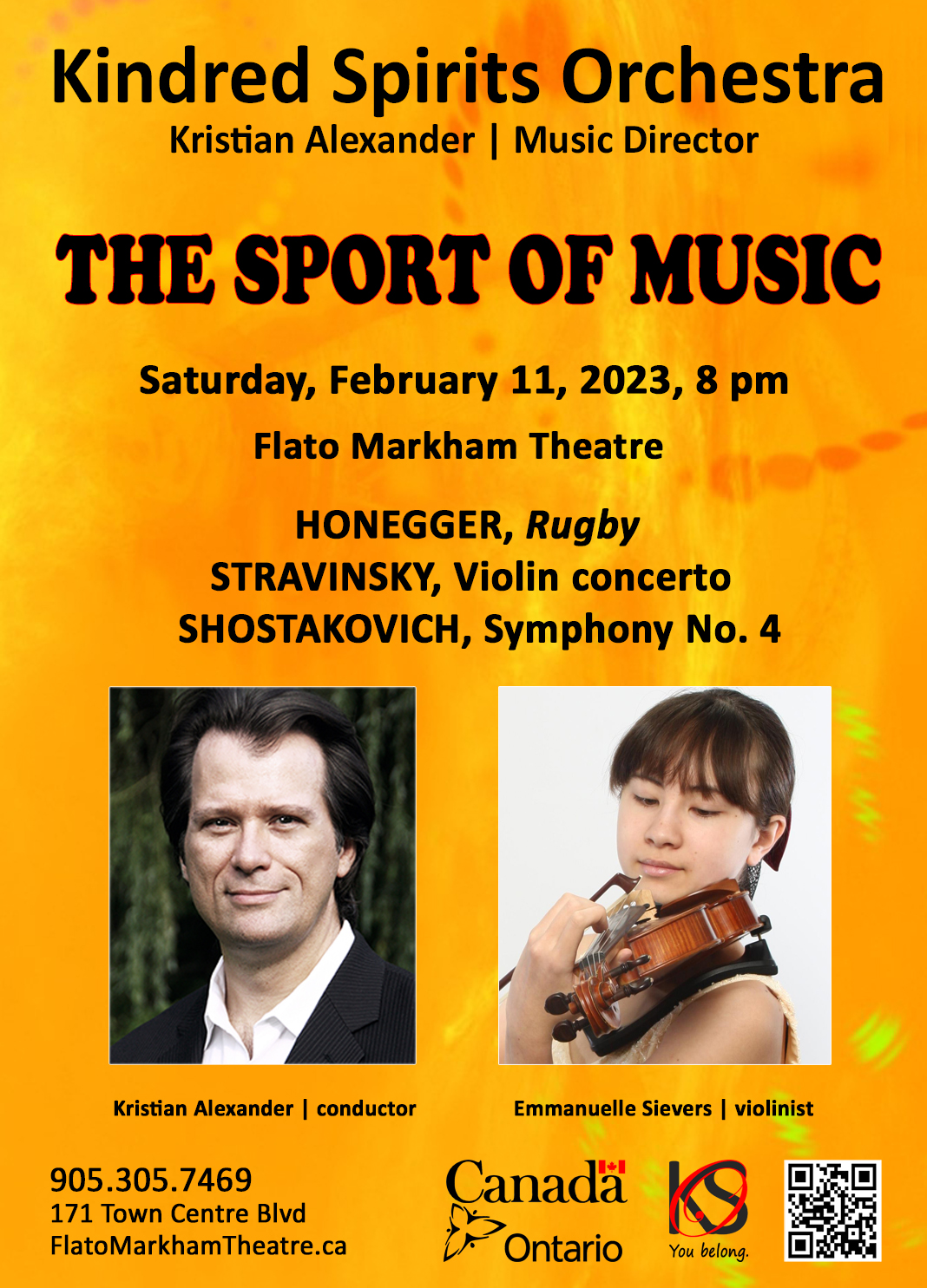 Artistic inspiration comes in many forms. The joy of sport is decidedly prevalent in the rhythmically rowdy Rugby by the avant-garde Swiss-French composer Honegger. At the request of his publisher, and in collaboration with a seasoned American violinist, Stravinsky penned his brightly bombastic neo-baroque Concerto for violin and orchestra. Motivated by the doctrine of Socialist Realism, Shostakovich withdrew the score of his enormously orchestrated Symphony No. 4, only to be performed 25 years after its creation.