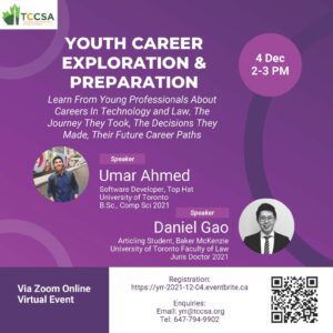 Learn from young professionals about careers in Technology and Law. Learn about the journey these two speakers took to achieve their career goals, the decisions they made, and their future career paths.