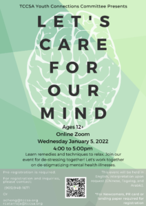 Youth led workshop that focuses on de-stigmatizing mental health illnesses and discussing remedies and techniques for self-care. Pre-registration is required; newcomer participants must provide Permanent Resident number upon registration. There will be raffle prizes and interactive activities, so please come support our youth!!