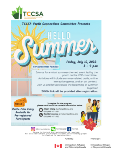 TCCSA's Youth Connections Committee (YCC) is running their second event of the season. Join us virtually for some fun summer-themed activities, crafts, interactive games, raffle, and art contest! For more details, email acheng@tccsa.org with the subject line "YCC Hello Summer".