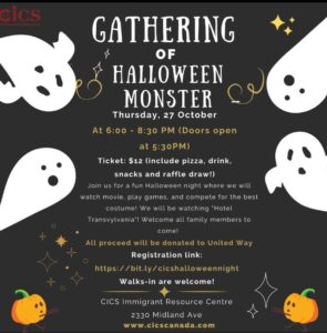 Hello Youth! This Halloween, we will be having a Halloween Family fun night in our Immigrant Resources Centre location! We will play trivia games, watch movie and compete for the spoookiest costume of the night! Come join us and families are welcome to join! Date: Oct 27 (This Thursday) Location: 2330 Midland Avenue Scarborough, ON …