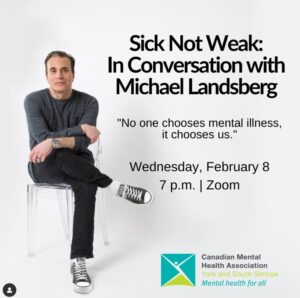 "No one chooses mental illness, it chooses us." Join CMHA York on Wednesday, February 8 at 7 p.m. on Zoom for a powerful conversation with Michael Landsberg, Founder of Sick Not Weak. Visit the link below to learn more and register. https://cmha-yr.on.ca/donor-event2023/?utm_campaign=later-linkinbio-cmhayork&utm_content=later-32584566&utm_medium=social&utm_source=linkin.bio