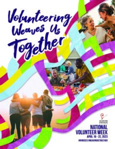 April 16 - 22, 2023 Volunteering Weaves us Together Let’s celebrate our individual and collective actions in creating a strong, interconnected and vibrant community! Volunteering weaves us together, strengthening the fabric of our community by sharing our time, talent and energy to support one another. Make sure to recognize your volunteers this year! Nominations for …